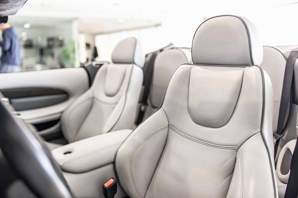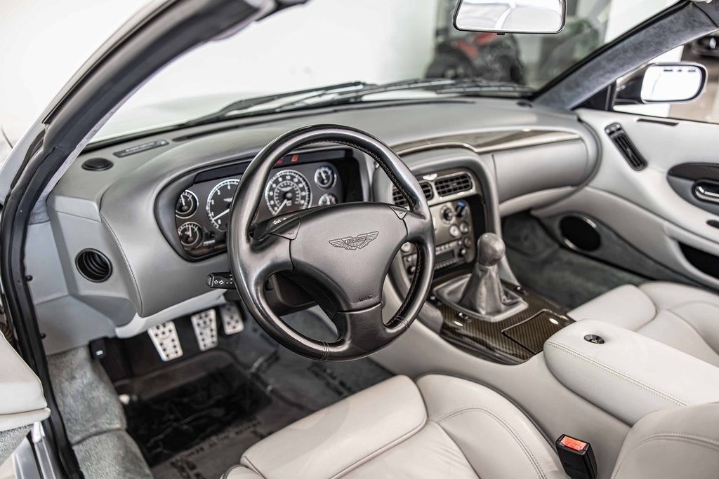 2002 Aston Martin DB7 Vantage Volante RWD 6.0L V12 DOHC A M Titanium Silver Clean CARFAX, Falcon Gray w/Connolly Leather Seat Trim, 19 Aluminum Wheels, Carbon Fiber Veneer Set, Convertible roof lining, Driver door bin, Front reading lights, Genuine wood console insert, Genuine wood dashboard insert, Genuine wood door panel insert, Heated door mirrors, Illuminated entry, Passenger door bin, Power door mirrors, Wheel & Tire Package.