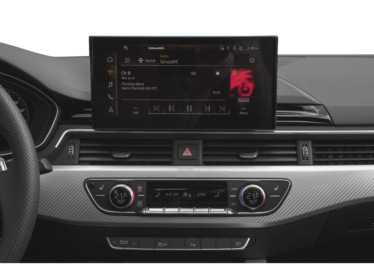 - Radio: Audi Sound System -inc: Audi connect CARE (limited time subscription), Audi smartphone interface w/wireless Apple CarPlay, Bang & Olufsen sound system w/3D sound, MMI touch display w/10.1" center screen, preparation for mobile phone (Bluetooth®) w/streaming audio and SiriusXM all access service w/3-month trial subscription