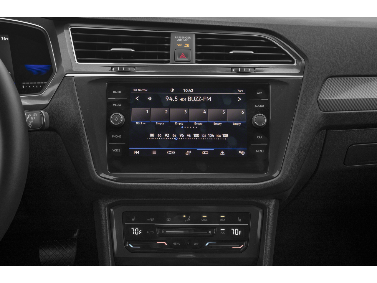 - Radio: MIB3 Composition Media AM/FM/HD -inc: 8" touchscreen, WMA/MP3/FLAC player w/USB-C, voice control, 6-speaker sound system, wireless inductive charger (for compatible devices), App-Connect smartphone integration (w/Apple CarPlay, Android Auto and MirrorLink) via USB, Wireless App-Connect smartphone integration (for compatible devices w/multi-phone pairing capability), capability for in-vehicle 4G LTE enabled Wi-Fi (cellular data plan required; includes limited trial), capability for VW Car-Net services (capabilities for certain services vary; requires enrollment or subscription), Bluetooth® connectivity (for compatible devices) and SiriusXM w/360L (w/3-month free trial subscription; 360L services require acceptance of Car-Net terms)