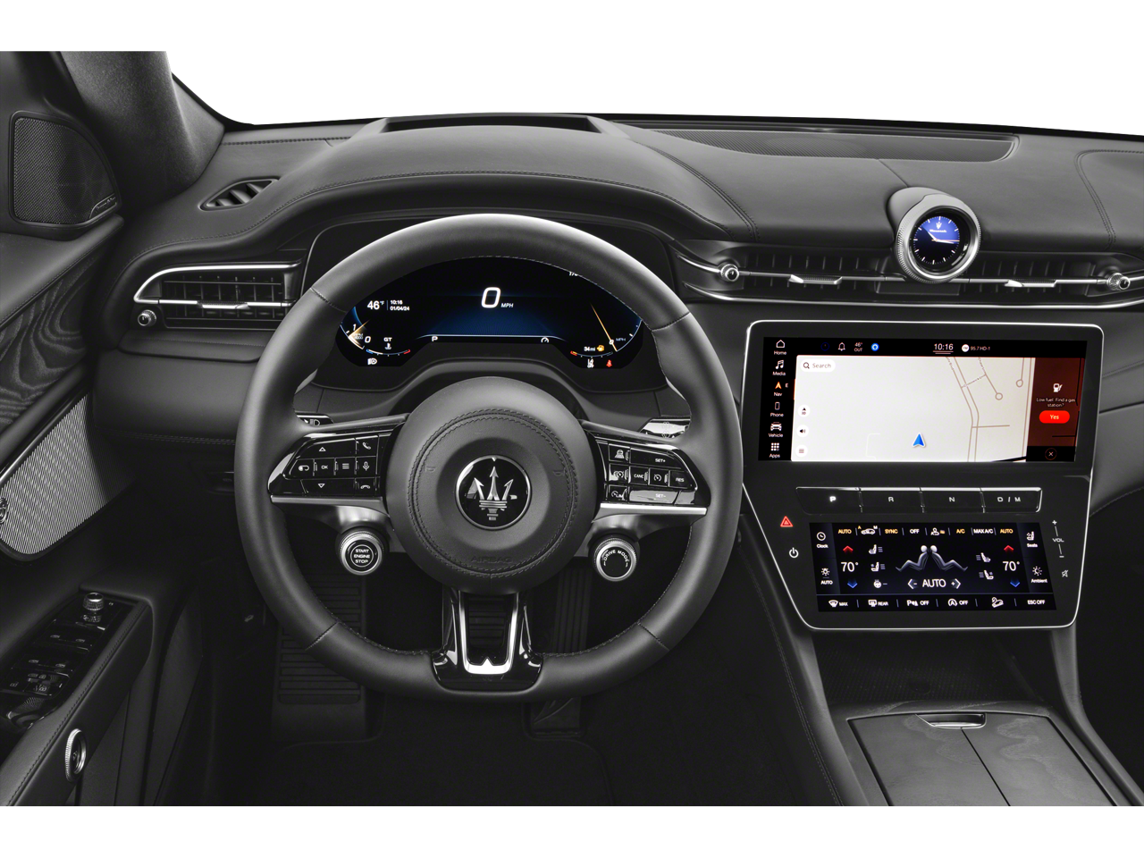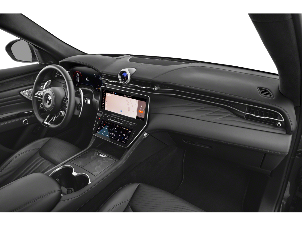 - Radio: Sonus Faber 860 Watts Premium Audio System -inc: 14 speakers w/subwoofer, Maserati Intelligent Assistant (MIA), 12.3" upper touchscreen, 8.8" lower touchscreen, navigation, HD radio, SiriusXM radio w/1-year trial subscription, wired and wireless Apple CarPlay and Android Auto, Maserati connected services w/trial subscriptions, Alexa in-vehicle voice assistant and eCall and bCall w/trial subscriptions