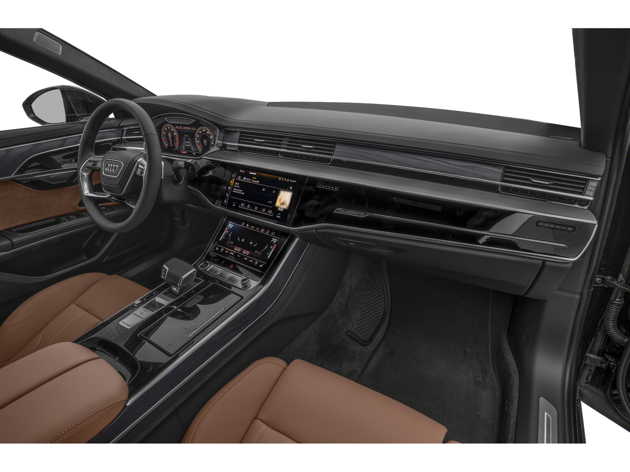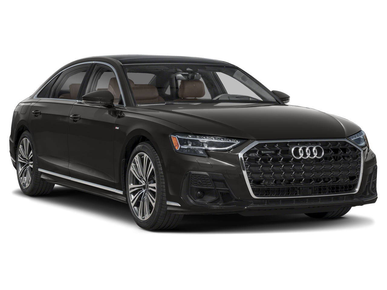 2025 Audi A8 L 55 quattro quattro 3.0L V6 Turbocharged DOHC 24V LEV3-ULEV70 335hp Mythos Black Metallic One Owner, Clean CARFAX, AWD, Navigation, Sunroof, Leather Seats, Heated Seats, Backup Camera, Memory Seats, Cooled Seats, Premium Sound System, Premium Audio, Multi-Zone Climate Control, Cognac Brown w/Valcona Leather Seat Upholstery, Adaptive Cruise Assist with Lane Guidance, Alu-Optic Buttons, Audi Side Assist with Pre Sense Rear, Black Brake Calipers, Black Exterior Trim, Black Optic Package, Dual-Pane Acoustic Glass For Side Windows, Dynamic All-Wheel-Steering, Executive Package, Extended Leather Package, Front Seat Massage Function, HD Matrix-Design LED Headlights, Head-Up Display, Headlight Washers, Heated Front Seat Armrests, Heated Rear Seats, Intersection Assist, LED Interior Lighting Plus Package, Luxury Package, Navigation System, Navigation system: MMI Navigation plus, Remote Park Assist Plus, Valcona Leather Seat Upholstery, Wheels: 21 5-Double-Spoke-Star S Design. Recent Arrival! 20/26 City/Highway MPG