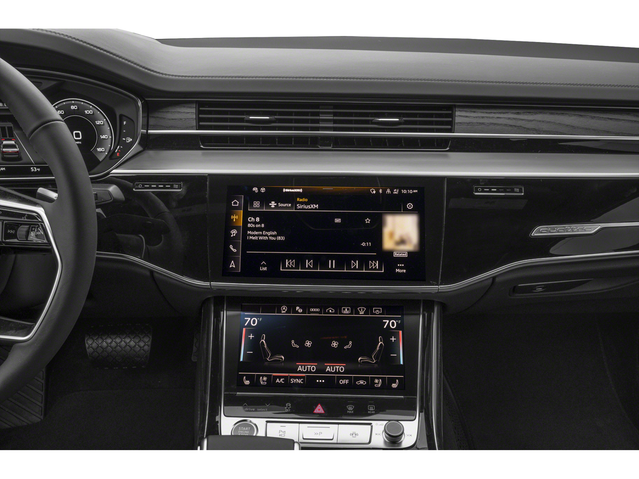 - Radio: Audi MMI Navigation Plus -inc: MMI touch response, Audi connect CARE w/remote start (limited time subscription, acceptance of terms required), Audi connect NAV & PLUS w/Audi app store (limited time subscription, acceptance of terms required), Audi smartphone interface w/wireless Apple CarPlay and Android Auto and SiriusXM w/360L (3-month platinum plan trial subscription)